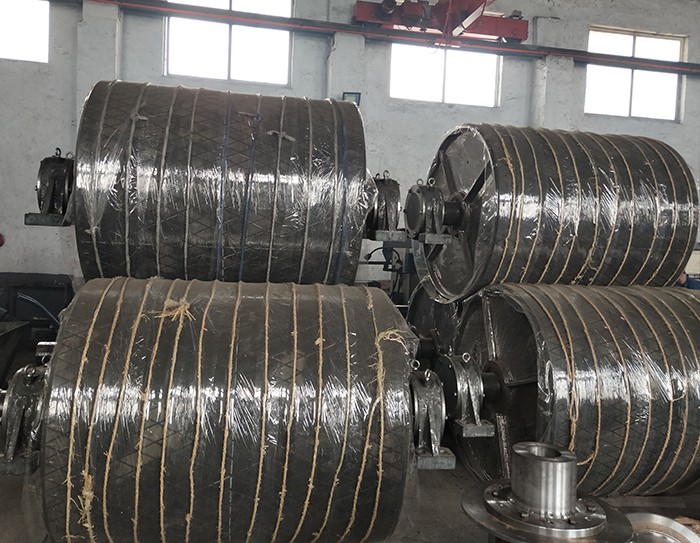 II型傳動滾筒從制作材料上來分有鋼板卷制焊接、鑄鋼及鑄鐵3種。從結(jié)構(gòu)型式上來分有裝配輻板式、輻條式、整體輻板式3種。另外,滾筒表面也有光面、包膠、鑄膠等型式;其中,以鋼板焊接裝配輻板式鑄膠滾筒應用廣泛。