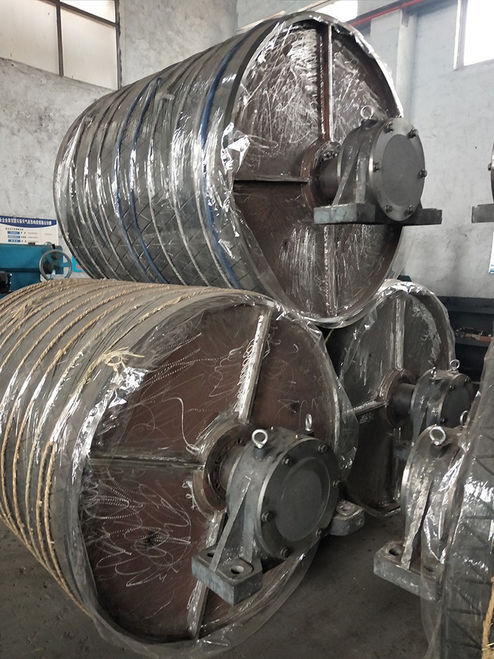 1) 鼓形滾筒。用鋼板卷圓焊接而成,中間部分筒徑大于二邊筒徑約幾毫米,目的是防止輸送帶跑偏。