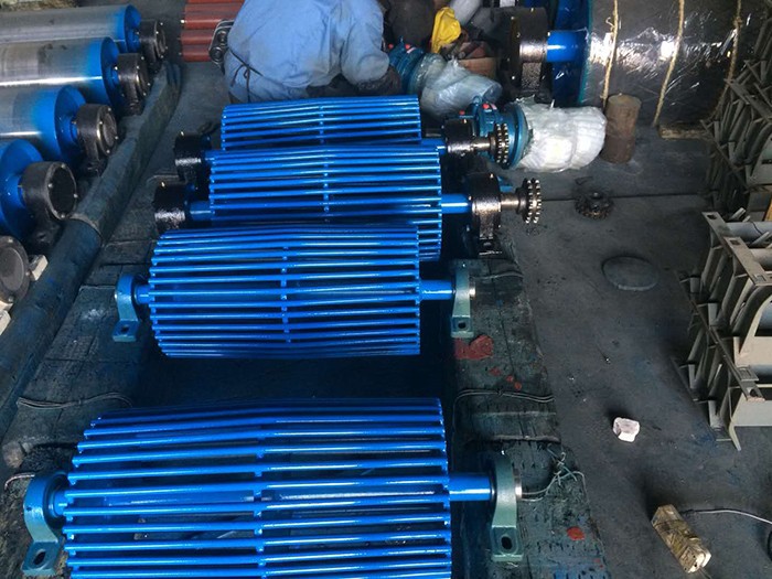 鼓型排渣滾筒系列兩端設(shè)置倒錐體結(jié)構(gòu),接觸面采用輪幅式,便于物料特別是大塊物料的排除,在輪幅工作面通過特殊工藝包覆聚氨酯彈性體耐磨材料,以利于提高耐磨性能及清掃效果,完全保護(hù)滾筒和膠帶,接觸面采用鼓型結(jié)構(gòu),可起到糾偏作用。